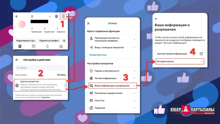 4️⃣ В появившемся окне нажмите «История поиска».